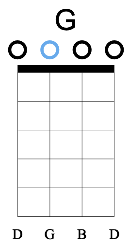 For the G major chord, you simply strum the open strings - no fingers required! All of the notes you need (G, B, D) are included in the open strings of the banjo when tuned to G.
