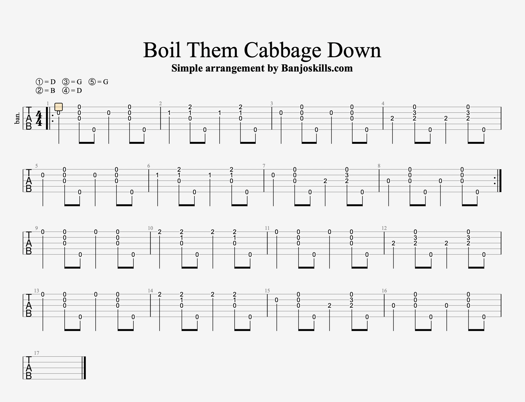 In this guide, we'll explore a beginner banjo arrangement of "Boil Them Cabbage Down", break down how to play it on banjo for beginners, and provide some easy free tablature to get you started. Whether you're just starting out or looking to improve your clawhammer skills, this is the resource for you.